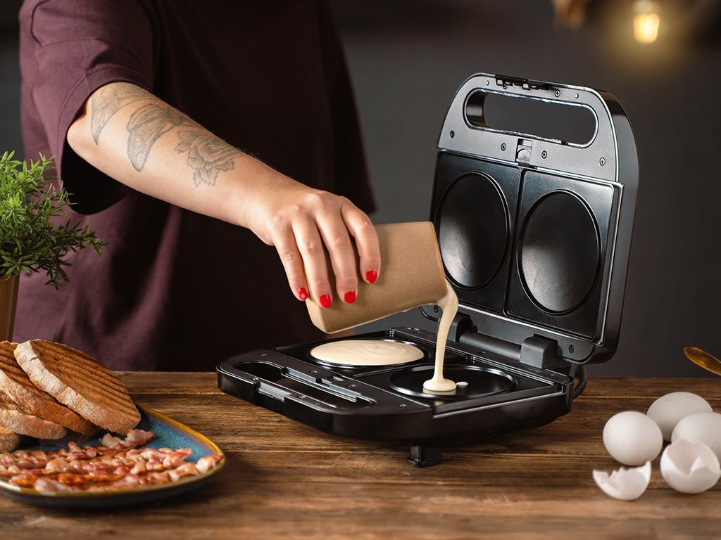 Använd den till gyllene pannkakor, perfekt stekta ägg eller rostade bagels - precis som du vill ha dem. Den non-stick beläggningen gör att maten lossnar lätt, utan att fastna eller gå sönder - även med klibbiga ingredienser. Perfekt när du vill ha något varmt, enkelt och tillfredsställande utan krångel.