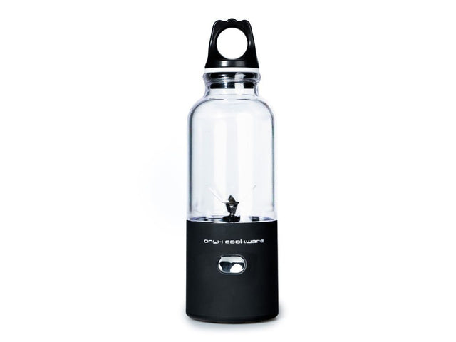ONYX COOKWARE™ BÄRBAR JUICEPRESS är lika bekväm som en vattenflaska. Den tar inte mer plats än en vattenflaska, så den passar bra att lägga i din väska eller ryggsäck. Den enkla svarta och genomskinliga designen passar till alla handväskor, ryggsäckar och på alla kontorsbord. Så du behöver inte oroa dig för att ONYX COOKWARE™ BÄRBAR JUICEPRESS sticker ut eller att det ser ut som att du tagit med en mixer till jobbet. Om du vill bära med dig ännu mindre kan motorn och bladen tas av från plastflaskan och ersättas med ett praktiskt lock, vilket gör den ännu mer kompakt.