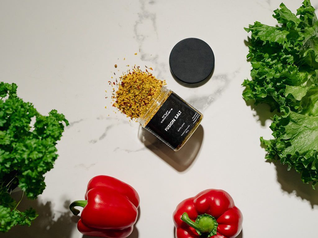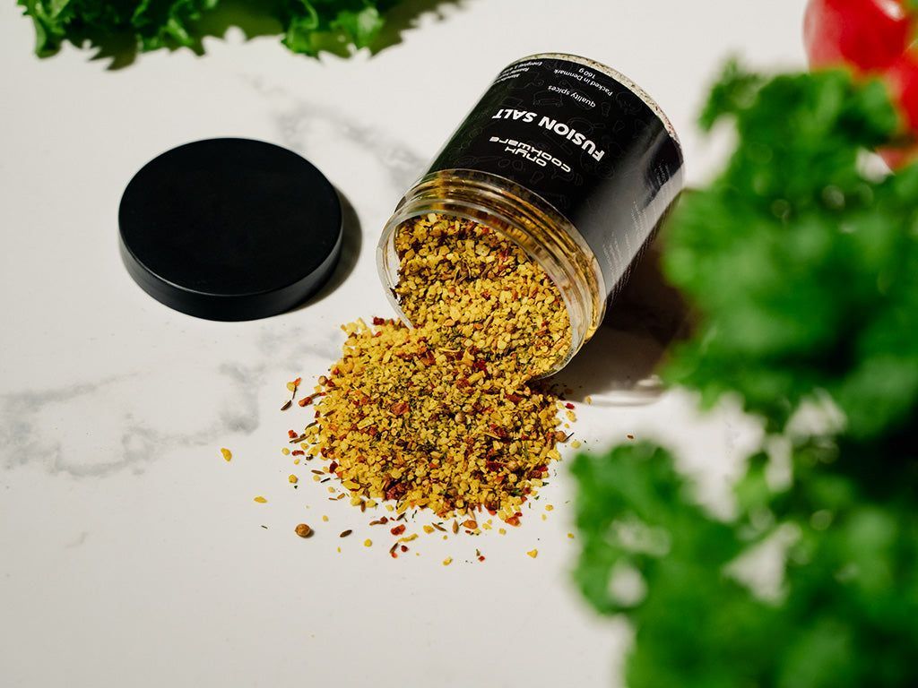 Dyk in i den lockande infusionen av premiumhavssalt som sammanvävs med en exotisk kör av kryddor. Oavsett om du tänder en eldig zest i grillat kött, mättar marinader med nyanserad djup eller omvandlar vanliga rätter till livfulla skapelser som sprakar av FUSION SALT:s karakteristiska smakprofil, bär varje korn löftet om en extraordinär kulinarisk resa.