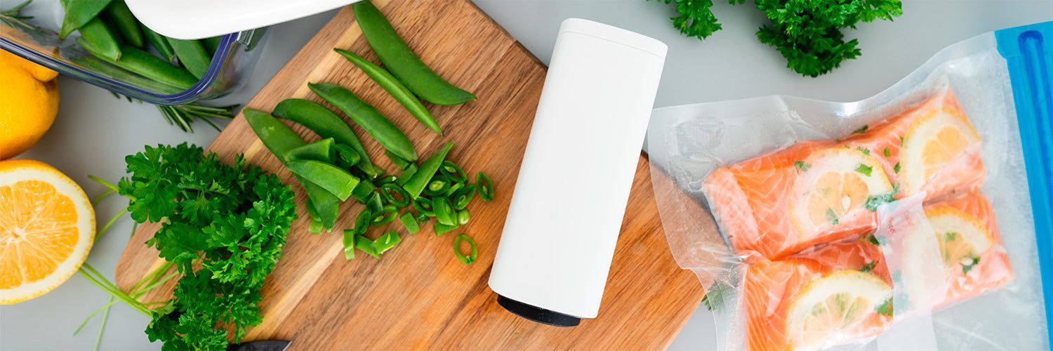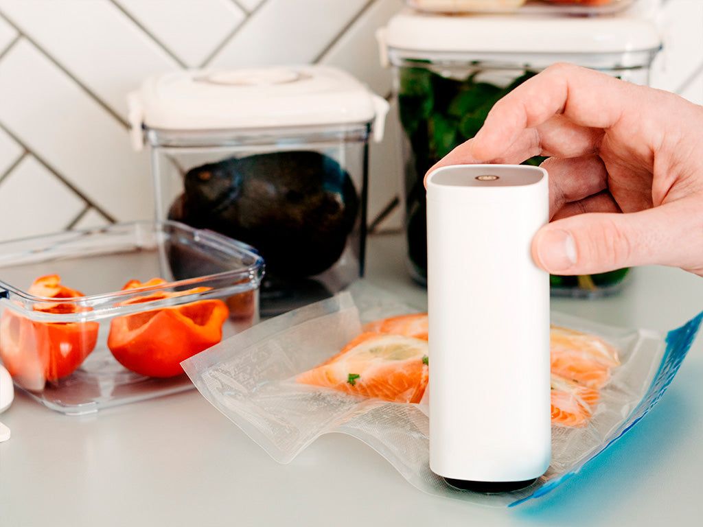 De flesta av oss har testat att använda vakuumförpackning, eftersom det är det överlägset bästa sättet att bevara maten längre, utan att frysa in den – och även vid infrysning är vakuum en klar fördel. Men att använda en vanlig vakuumförpackare är helt enkelt inte särskilt bekvämt. Du måste ha en enorm vakuummaskin som du måste plocka fram ur ditt skåp och sedan koppla in i eluttaget. Sedan måste du hitta dina vakuumpåsar och använda maskinen för att göra vakuumet och försegla påsen genom att i princip smälta plasten. Vi har haft de här maskinerna själva, men så småningom fick de bara bli kvar i skåpet, helt enkelt för att de var så krångliga och besvärliga att använda.