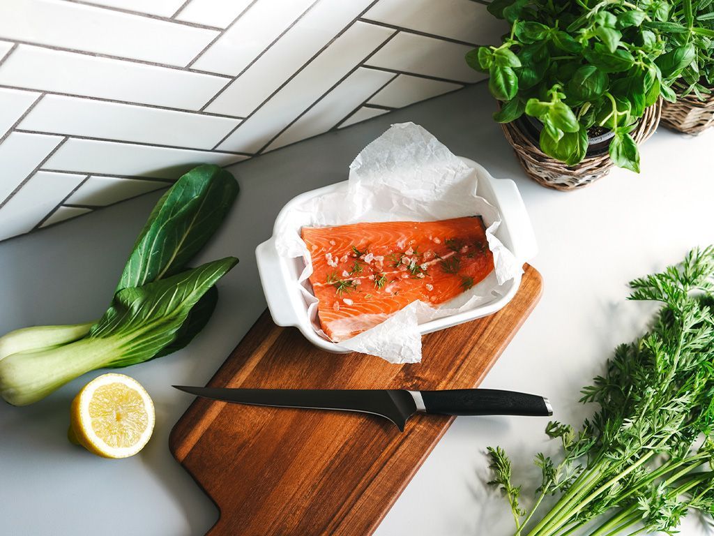 Att rensa och filéa en fisk är inte i närheten av detsamma som att hacka igenom hårda ben och kött. Att filéa är ett mycket mer finkänsligt och smidigt arbete, och det är därför det kräver en speciell filékniv. Det kräver ett blad som är flexibelt nog att böjas men som är omöjligt att bryta. Av den anledningen ska du köpa ONYX COOKWARE™ FILÉKNIV. Eftersom fisk är en mjukare typ av kött jämfört med en stek eller annat mörkt kött, är det mindre troligt att du behöver överdriven kraft för att skära och rensa den. Det är därför du behöver en kniv som levererar precision istället för en klumpig kockkniv som är utformad för att skära igenom fastare köttsorter.