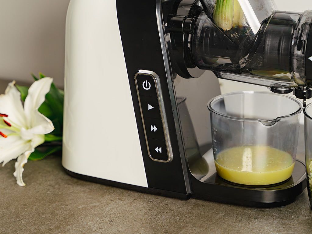 Säg adjö till färdigköpta juicer som ofta är fulla av konserveringsmedel, socker och konstgjorda smaker, vilket inte bara komprometterar smak och färskhet utan också hälsosamma fördelar med din juice. Vår ONYX COOKWARE™ SLOW JUICER är en genuin gamechanger inom juiceworld. Tänk dig att släcka törsten med ett uppfriskande glas nypressad juice, en mild spenatmix eller varför inte en hemgjord ingefärsshot för att kickstarta dagen? Med vår slow juicer är du försäkrad om den renaste, näringsrika juicen, direkt vid dina fingertoppar. Från uppiggande citrusröror till näringsrika gröna juicer, och från antioxidantrika bärsafter till immunstärkande grönsaksmixar, vår ONYX COOKWARE™ SLOW JUICER uppfyller alla dina juicingsbehov!